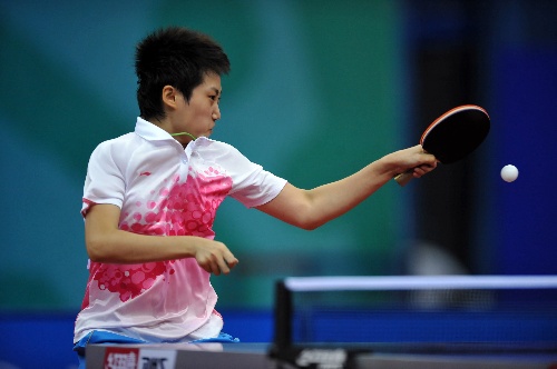青岛,2009年9月30日 (体育)(1)乒乓球——全运会女单:郭跃胜姚彦 9月30日,辽宁队选手郭跃在比赛中回球。当日,在青岛举行的第十一届全国运动会乒乓球女子单打第三轮比赛中,郭跃以4比3战胜上海队选手姚彦,晋级下一轮。 新华社记者陈晔华摄