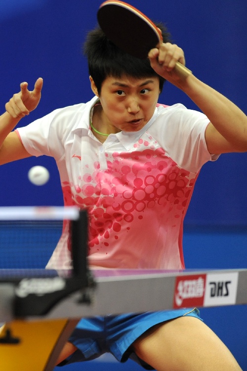 青岛,2009年9月30日 (体育)(5)乒乓球——全运会女单:郭跃胜姚彦 9月30日,辽宁队选手郭跃在比赛中回球。当日,在青岛举行的第十一届全国运动会乒乓球女子单打第三轮比赛中,郭跃以4比3战胜上海队选手姚彦,晋级下一轮。 新华社记者韩瑜庆摄