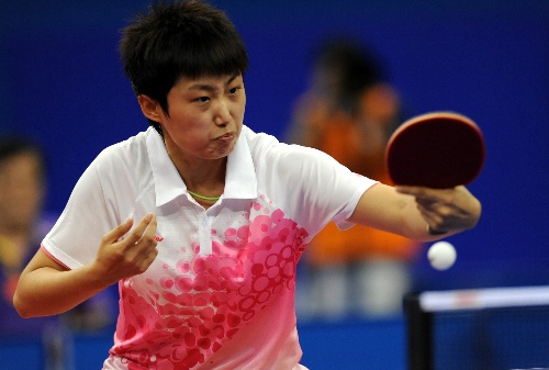 青岛,2009年9月30日 (体育)(6)乒乓球——全运会女单:郭跃胜姚彦 9月30日,辽宁队选手郭跃在比赛中回球。当日,在青岛举行的第十一届全国运动会乒乓球女子单打第三轮比赛中,郭跃以4比3战胜上海队选手姚彦,晋级下一轮。 新华社记者韩瑜庆摄