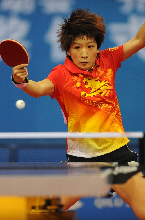 青岛,2009年9月30日 (体育)(4)乒乓球——全运会女单:刘诗雯胜曹臻 9月30日,广东队选手刘诗雯在比赛中。当日,在山东青岛举行的第十一届全运会乒乓球女子单打第三轮比赛中,刘诗雯以4比0战胜山东队选手曹臻,晋级下一轮。 新华社记者韩瑜庆摄