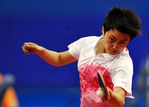 青岛,2009年9月30日 (体育)(1)乒乓球——全运会女单:郭跃胜饶静文 9月30日,郭跃在比赛中回球。当日,在山东青岛举行的第十一届全运会乒乓球女子单打比赛中,辽宁队选手郭跃以4比1战胜湖北队选手饶静文。 新华社记者陈晔华摄