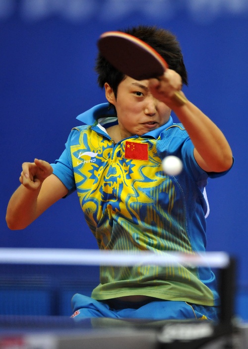 10月1日,郭跃在比赛中。当日,在青岛举行的第十一届全国运动会乒乓球女子单打决赛中,辽宁队选手郭跃以1比4负于北京队选手张怡宁,获得亚军。 新华社记者陈晔华摄