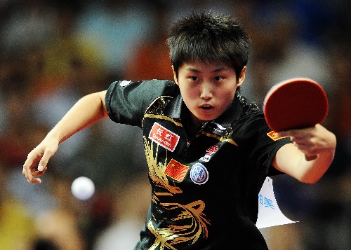 广州,2009年10月12日 (体育)(6)乒乓球——女乒世界杯:郭跃获亚军 10月12日,中国选手郭跃在比赛中回球。当日,在广州举行的2009年乒乓球女子世界杯决赛中,郭跃以3比4不敌队友刘诗雯,获得亚军。 新华社记者刘大伟摄