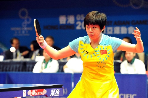 香港,2009年12月2日   (东亚运动会)(1)乒乓球——乒乓球团体赛赛况 12月2日,中国队选手曹臻在比赛中回球。当日,东亚运动会乒乓球比赛拉开战幕,中国队在女子团体小组赛中以3比0战胜中国澳门队。 新华社记者黄本强摄