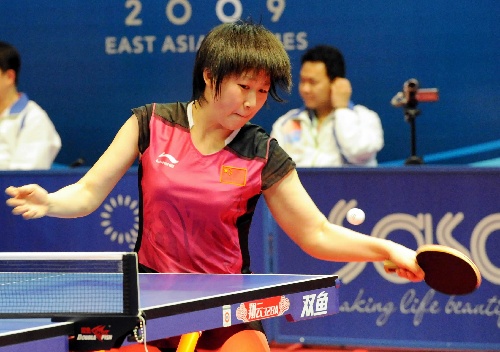香港,2009年12月4日 (东亚运动会)(1)乒乓球——女子单打赛况 12月4日,中国运动员文佳在比赛中。当日,在东亚运动会乒乓球女子单打比赛中,文佳以4比1胜韩国运动员李恩姬。 新华社记者黄本强摄
