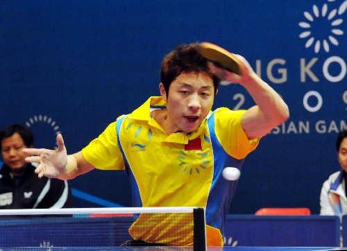 东亚运乒乓球单打首轮 许昕正手进攻