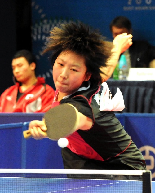 香港,2009年12月4日 (东亚运动会)(1)乒乓球——女单四分之一决赛:文佳胜福原爱 12月4日,中国选手文佳在比赛中回球。当日,在香港进行的东亚运动会乒乓球女单四分之一决赛中,文佳以4比0战胜日本选手福原爱,晋级半决赛。 新华社记者黄本强摄