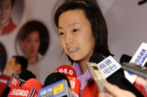 张怡宁出席记者发布会 接受记者采访