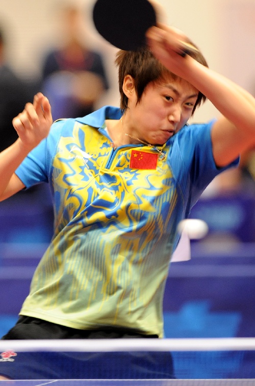 南通(江苏),2010年2月1日   (体育)(3)乒乓球——“兵发莫斯科”选拔赛赛况 2月1日,郭跃在比赛中回球。当日,在江苏省南通市中国乒乓球通州训练基地举行的中国乒乓球女队“兵发莫斯科”选拔赛循环赛中,郭跃以3比2战胜武扬。 新华社记者韩瑜庆摄