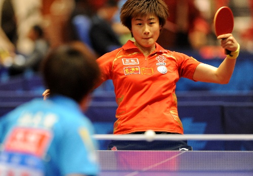南通(江苏),2010年2月1日   (体育)(9)乒乓球——“兵发莫斯科”选拔赛赛况 2月1日,丁宁在比赛中回球。当日,在江苏省南通市中国乒乓球通州训练基地举行的中国乒乓球女队“兵发莫斯科”选拔赛循环赛中,丁宁以3比1战胜刘诗雯。 新华社记者韩瑜庆摄