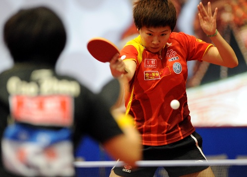 南通(江苏),2010年2月4日   (体育)(3)乒乓球——“兵发莫斯科”选拔赛赛况 2月4日,李晓霞在比赛中回球。当日,在江苏省南通市中国乒乓球通州训练基地举行的中国乒乓球女队“兵发莫斯科”选拔赛循环赛中,李晓霞以3比1战胜常晨晨。 新华社记者韩瑜庆摄