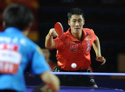 厦门,2010年2月5日 (体育)(5)乒乓球——中国男乒“直通莫斯科”选拔赛开赛 2月5日,中国男乒队员王励勤(右)在比赛中回球。当日,中国乒乓球男队“直通莫斯科”队内选拔赛在福建省厦门市拉开战幕。 新华社记者姜克红摄