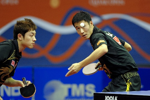 多哈,2010年2月21日 (体育)(22)乒乓球——卡塔尔公开赛战报 2月20日,中国选手王励勤(右)/许昕在比赛中。当日,在2010年国际乒联职业巡回赛卡塔尔公开赛男子双打半决赛中,王励勤/许昕以4比0战胜韩国选手吴尚垠/徐贤德,晋级决赛。 新华社发(陈少金摄)