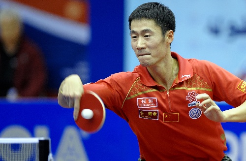 多哈,2010年2月21日 乒乓球——卡塔尔公开赛王励勤夺冠 2月21日,中国选手王励勤在比赛中回球。当日,在2010年国际乒联职业巡回赛卡塔尔公开赛男单决赛中,王励勤以4比1战胜队友张继科,夺得冠军。 新华社发(陈少金摄)