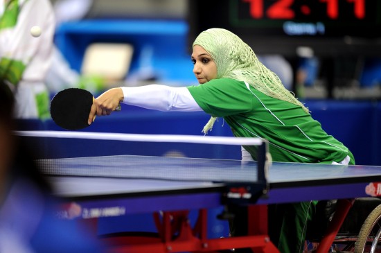 12月14日,伊拉克选手苏海尔-伊格扎尔在女子单打TT5B组第3场比赛中。最终,她以0比3不敌中华台北选手魏美惠。当日,2010亚残运会乒乓球比赛在广州亚运城体育馆举行。残疾人乒乓球在比赛的类型上分为站立和轮椅两大类,在比赛形式上有单打以及团体赛中的双打,在比赛项目上有团体和单项。