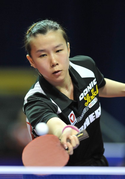 5月11日,奥地利选手李嫱冰在比赛中回球。当日,在荷兰鹿特丹阿侯伊体育馆举行的2011年世界乒乓球(单项)锦标赛女子单打第二轮比赛中,李嫱冰以4比3战胜日本选手石垣优香。