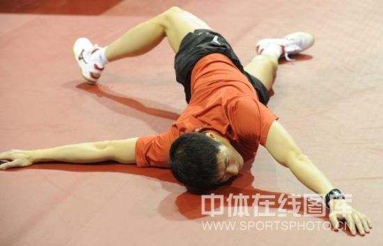 中国队世乒赛赛间轻松准备 王励勤如此热身