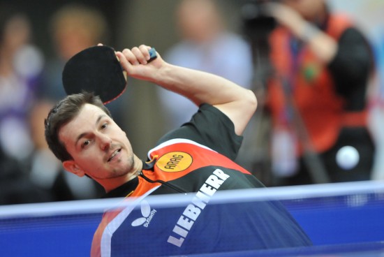 5月14日,德国选手波尔在比赛中回球。当日,在2011年世界乒乓球(单项)锦标赛男子单打四分之一决赛中,德国选手波尔以4比1战胜中国选手陈玘,晋级四强。