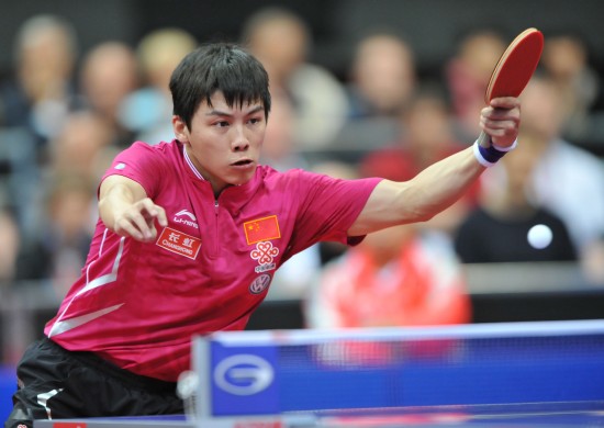 5月14日,中国选手陈玘在比赛中回球。当日,在2011年世界乒乓球(单项)锦标赛男子单打四分之一决赛中,中国选手陈玘以1比4不敌德国选手波尔,无缘四强。