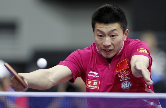 5月15日,中国选手马龙在比赛中回球。当日,在荷兰鹿特丹阿侯伊体育馆举行的2011年世界乒乓球(单项)锦标赛男子单打半决赛中,马龙以2比4不敌队友王皓,获得铜牌。