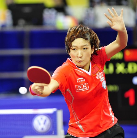 6月18日,刘诗雯在比赛中回球。当日,在2011年中国乒乓球公开赛女子单打四分之一决赛中,中国选手刘诗雯以4比1战胜中国选手李晓丹,晋级半决赛。