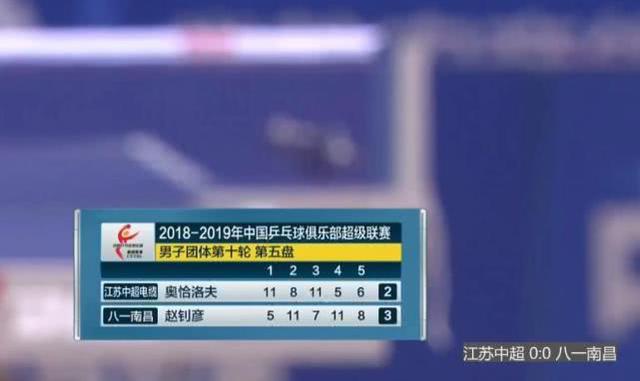 北京时间12月22日,2018-19赛季中国乒乓球超级联赛第10轮,在男团江苏中超电缆利永俱乐部,对阵八一南昌俱乐部的比赛中,主场作战的江苏队1-3负于世界第一樊振东领衔的八一南昌队,前世界第一奥恰洛夫以2个2-3分别输给赵钊彦、樊振东,一人丢掉两分。