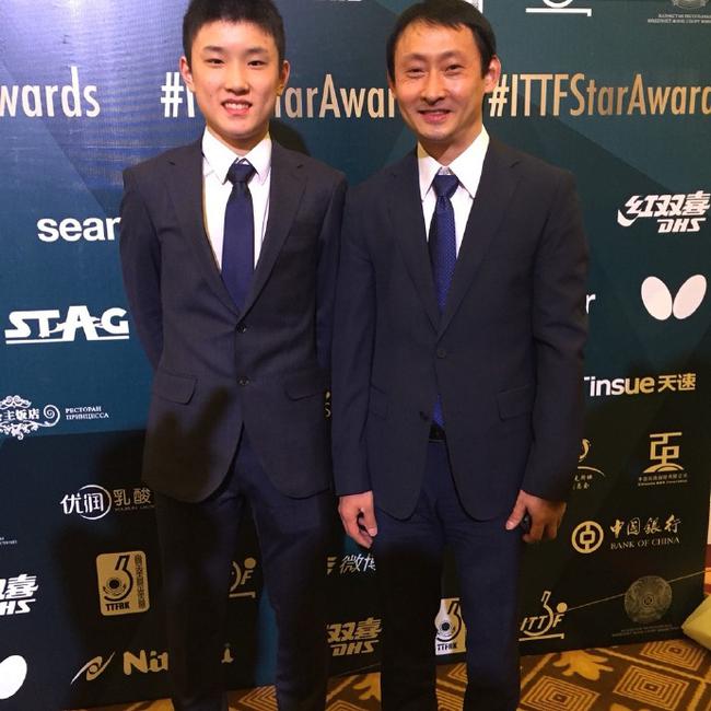 2017国际乒联球星盛典,被提名年度最佳教练的张宇与儿子
