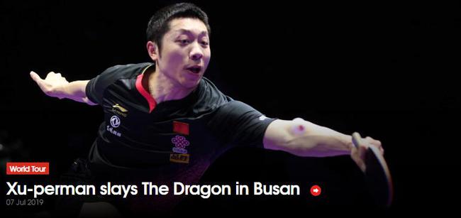 背靠背两站公开赛夺得5冠1亚,许昕如此出色的表现也折服了国际乒联,用“Xu-perman”来赞美他。国际乒联的标题更是使用了“slays The Dragon”。