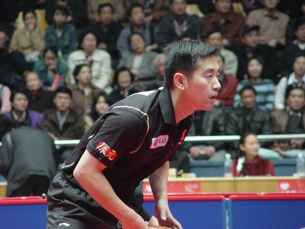 LG杯中韩乒乓球对抗赛 孔令辉冷静的回球   LG杯中韩乒乓球对抗赛举行,中国队派出了王皓、郝帅、邱贻可、孔令辉参加第一轮单打的比赛,韩国队派出了朱世赫、吴尚垠、金泽洙和柳承敏分别应战。图为现场比赛情况。