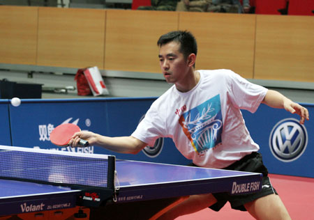 04年中国乒乓球公开赛第一日 孔令辉再出征   北京时间2004年9月10日,乒乓球松下中国公开赛进行了男女单打,男女双打全部四个项目的正赛。在首日比赛中,中国选手全部获胜。图为比赛精彩瞬间。