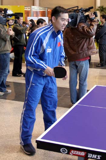 大众汽车赞助总决赛发布会 孔令辉动作依然飘逸   北京时间2004年12月9日,大众汽车赞助国际乒联巡回赛总决赛发布会在北京举行,中国国手们纷纷亮相造势。图为发布会现场的精彩瞬间。