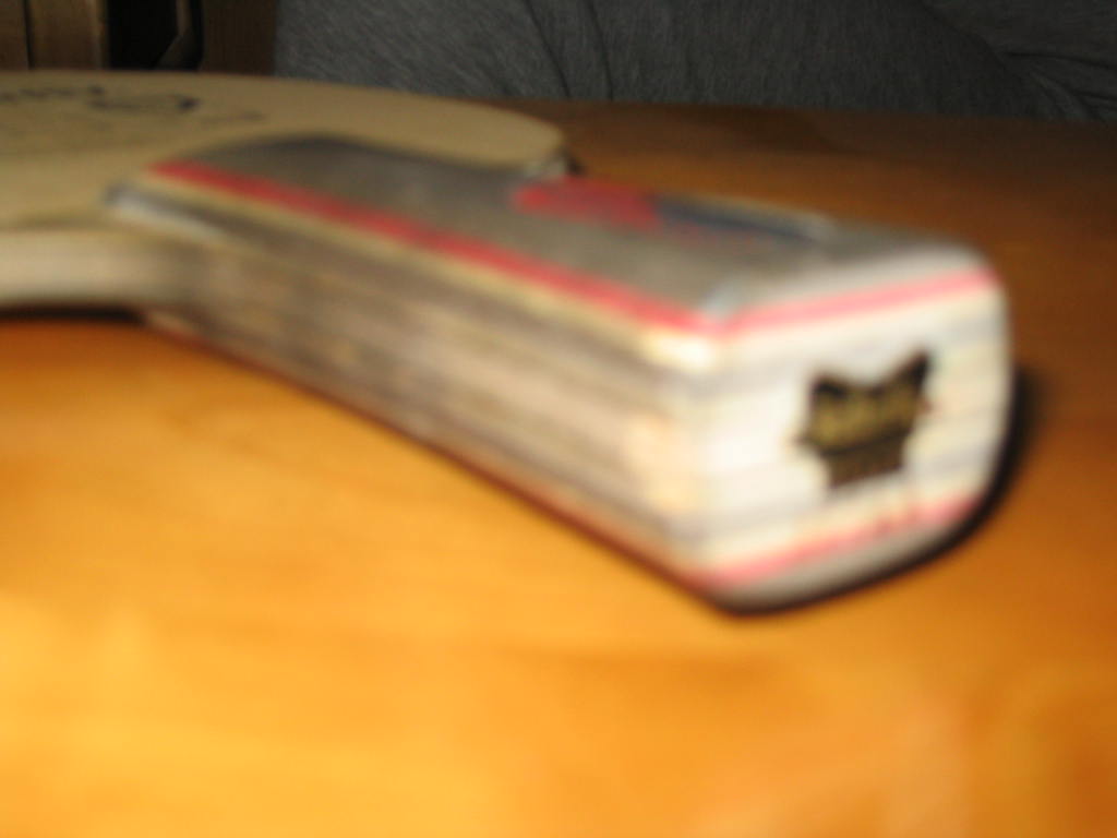 hi, ah_wayne, 请看我的普碳,或者其他好东东,今晚刚弄上去的图片,搞得我好累好晚啊!还有啊,慢慢看!注意在正面1点钟位置有极少的碰伤,不过不认真看也是看不出的啊!还有一处是在拍子的尾端有轻微碰伤,其余的都很新,无损!我在广州的!