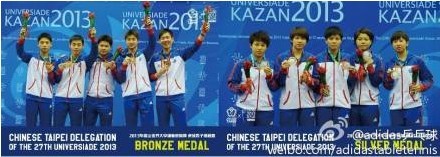 adidas乒乓球赞助的中华台北乒乓球队在这次世界大学生运动会中获得男子团体铜牌,女子团体银牌