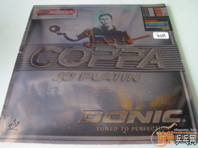 ---很明确的COPPA JO PLATIN是DONIC FORMULA內建快胶性能胶皮系列中,速度和旋转表现最强烈的。