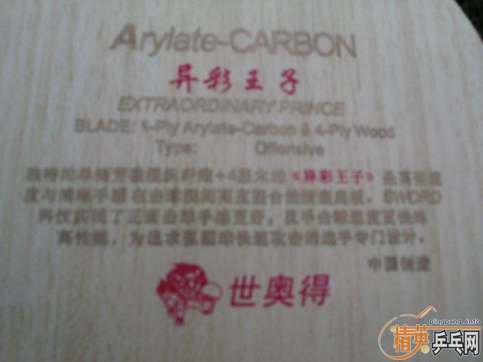 这块板子是世奥德的异彩王子,结构和孔芳碳是一样的,一面芳碳一面碳然后是四木,新到什么程度请直接看图。拍摄的时候是上星期五,刚到手,拍子的保护膜还没有拆开,价格标签还在上面。拍完后我打过两次,无任何磕碰或是拉丝,和quan新的差不多。打了两次觉得这个拍子很有意思,两面速度的确不一样,反手快速适合弹击和控制,正手慢点能吃球拉球很转。当然也没夸张到正手像oc反手像cl的程度,但的确很有意思。当然缺点也有,个人感觉就是两面弹性不一样造成的不习惯,比如反手比正手弹打着打着我就忘了,劈长老出台,当然习惯了应该就好了,不然孔令辉也不会大满贯。特出给对这个结构没打过好奇或着对这个品相满意的朋友。