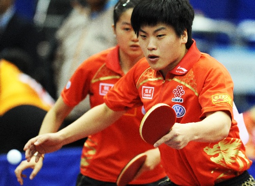 横滨(日本),2009年4月29日 (体育)(1)乒乓球——世乒赛:郝帅/常晨晨首轮获胜 4月29日,中国选手郝帅/常晨晨在比赛中。当日,郝帅/常晨晨组合在第50届世乒赛混双正选赛首轮比赛中以4比1战胜马来西亚的许茂盛/崔苏珍组合,晋级下一轮。 新华社记者徐家军摄