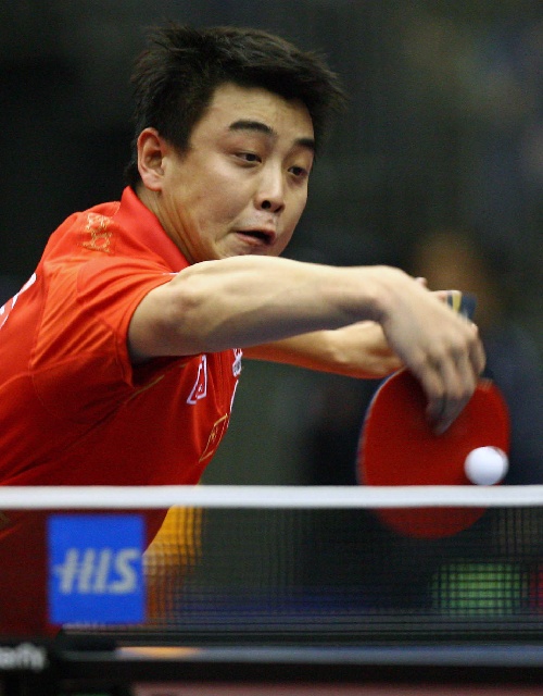 横滨,2009年5月2日 (体育)(7)乒乓球——世乒赛:男单八分之一决赛赛况 5月2日,王皓在比赛中。当日,在日本横滨举行的第50届世乒赛男单八分之一决赛中,中国选手王皓以4比2战胜中国香港选手江天一,晋级八强。 新华社记者毕明明摄