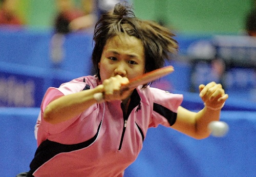 6月18日,河北冀中能源队选手平野早矢香在比赛中回球。当日,在2009年中国乒乓球俱乐部甲A比赛(第二站)女子团体第一阶段比赛中,河北冀中能源队以3比1战胜濮阳乒校队。 新华社记者杨世尧摄