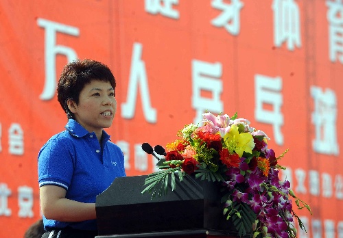 鸟巢万人乒乓球活动 邓亚萍发表讲话