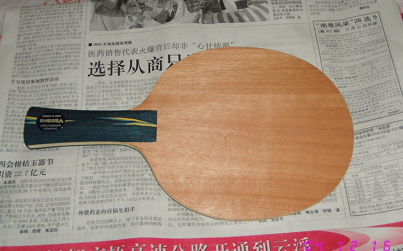 没有,买的时候都是很精心挑选的,只不过最近从球友手中连续购入了几块拍子,导致银根吃紧啊,哈哈!