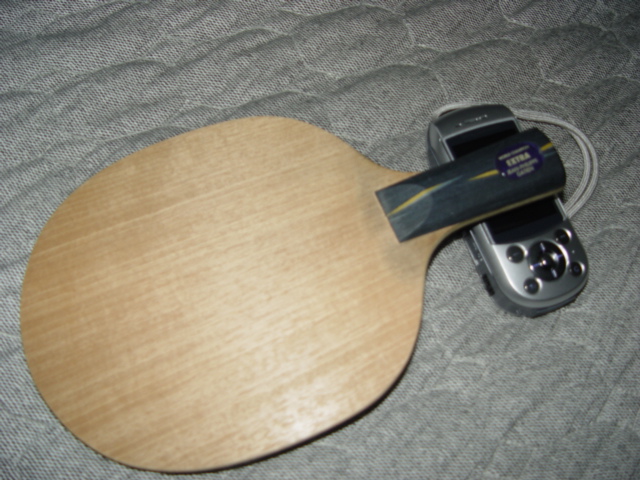 这块是器材商店老板留给朋友的,说是样品,不卖,我这个老客户也是费了很大劲弄到手的,没有日本乒协的标志,只有铁牌,用起来底劲相当不错,是我用过的ye中感觉最好的一块