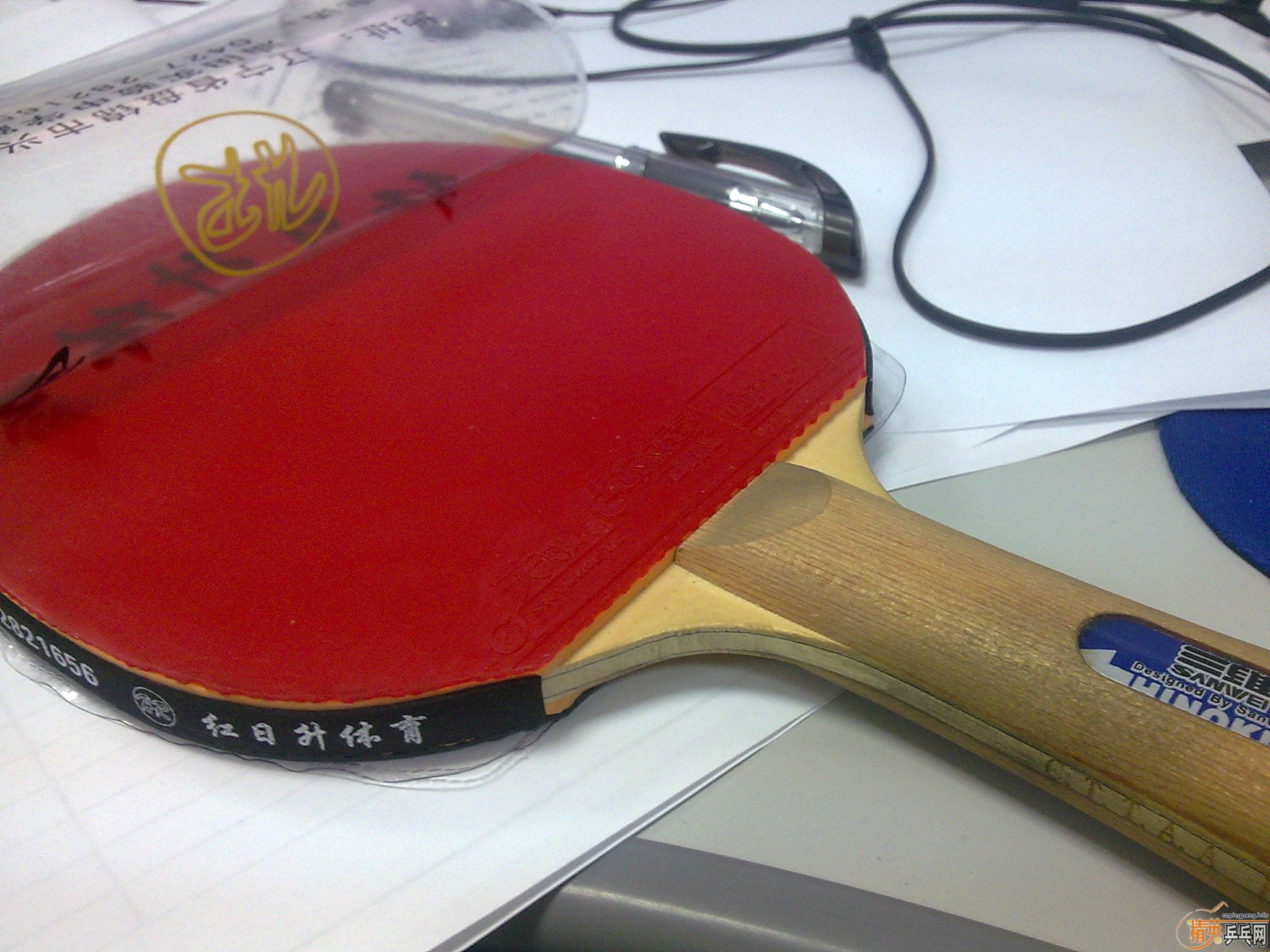 RT,出樊振东SA直板版面 无码蓝海绵国狂40.5(左右)离拍柄约1CM 且大一圈, 红色T05贴满。 蓝海绵国狂 ...
