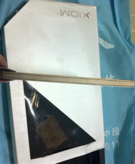 这么多年出板没用过支付宝呢,因为阿昕信誉好。但搞到山寨CL被封闭了,从没玩过CL,买来打打玩,没想到花水货的钱买了个山寨,的确不知情。后来TAOBAO给退货了。封闭是这里的规矩,不能不从啊。但也不能影响我多年的信誉啊,和阿昕交易过的哥们都知道俺的为人。大家眼睛是亮的啊!这次出拍俺都送大Z了呢。来看看吧。新买的此拍,打了半小时就碰了两下,很是心疼.不过小伤可忽略不计.拍肩膀涂了指甲油,手柄上很宽很方,我稍微打磨了一下,手比较大,现在握起来非常舒服的很,手心不空.这板弹性比较好,中远台对拉非常爽,正手狂3反手大Z是绝配,或者正手欧2.相当爽,我反手已经打生胶了,不适用此拍,打双反很好用,再加上腰受损伤,半年不能比赛了,心里很难过,出此拍得安慰.重量88克