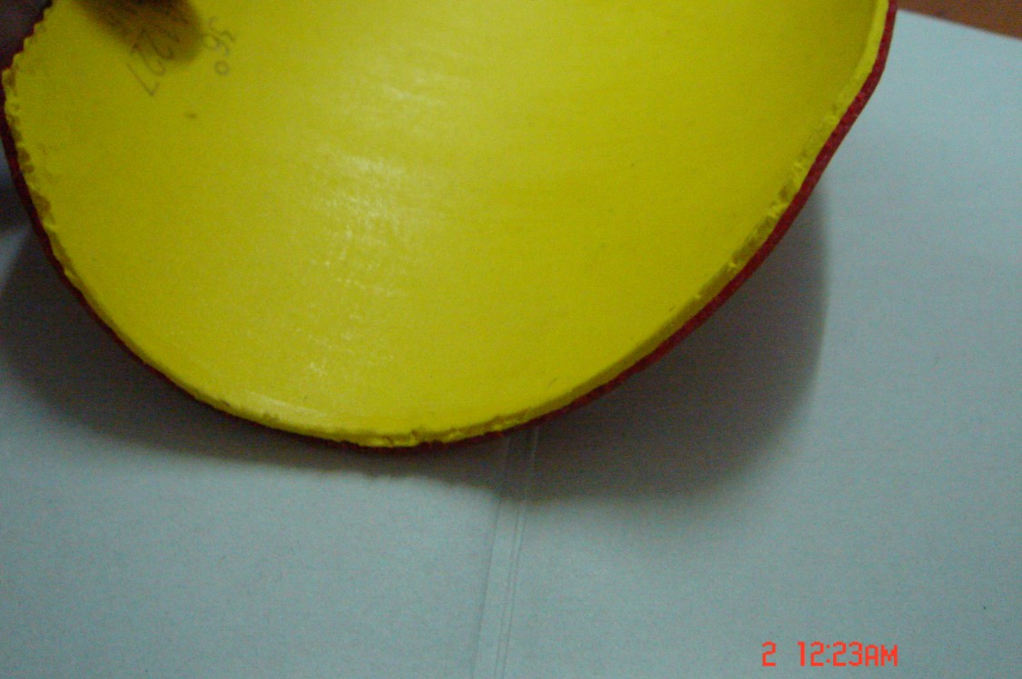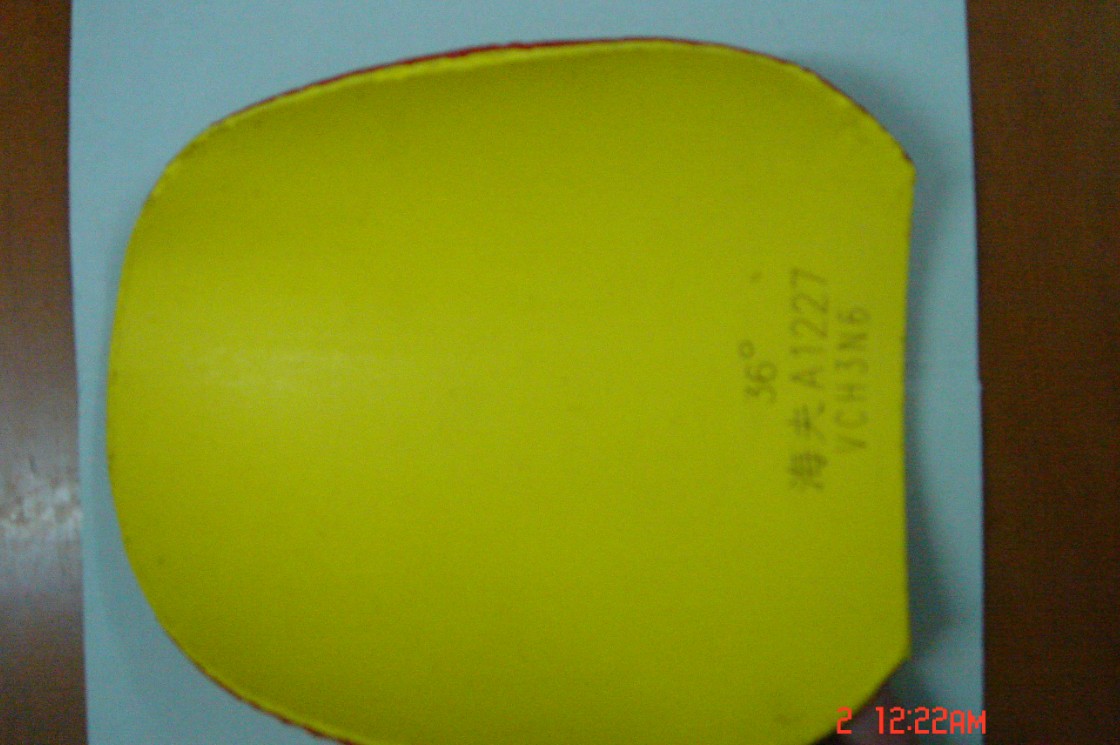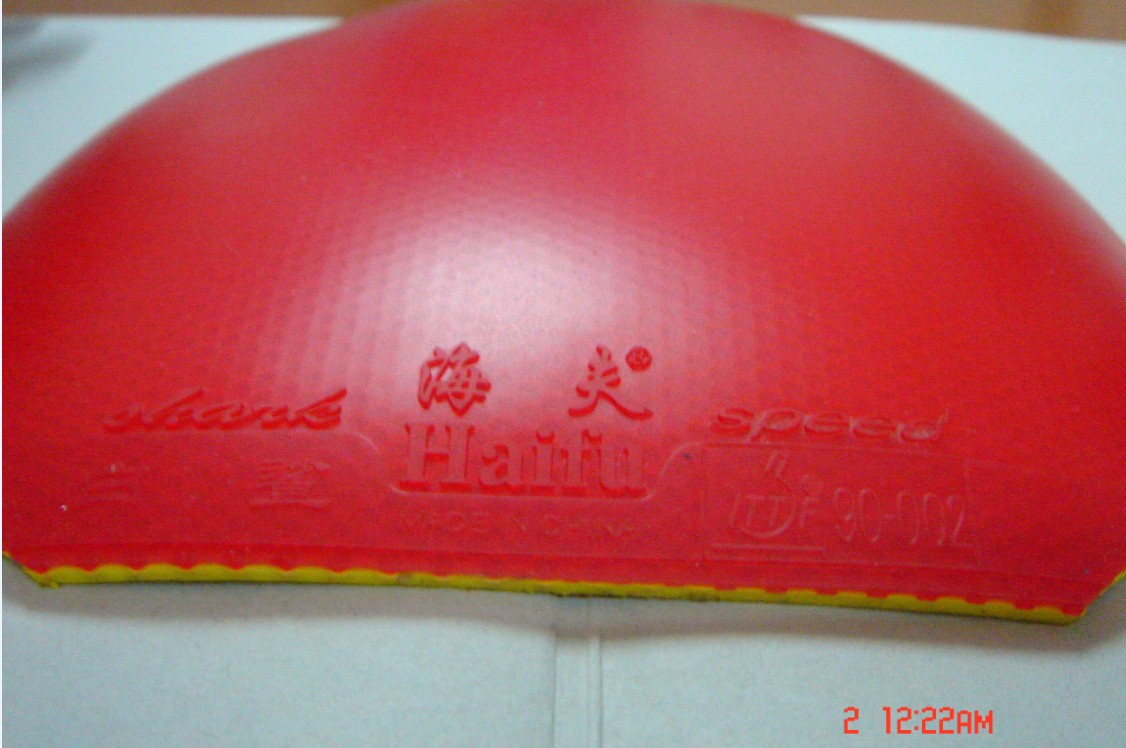 这些都是一手货来的,反面是36度白鲨训练版,两块胶皮都是剪好以后只打过一次。蓝鲸的打底层还有些效,我就没除胶。白鲨的除了,不过弄了一个小坑在海绵那里。很小很小的,深度大约0.2mm,不是cm,很薄的,涂了胶水基本就可以忽略了。。。其实我很喜欢白鲨,现在手头还在打33度的白鲨。。。这块36度的为什么出呢,两个原因,第一,单出蓝鲸我邮费都亏了,第二,白鲨的右面切的不好,海绵有点碎了。胶面也有一点点裂开,不过很小很小,不影响使用。可是我完美主义觉得不好看就不要了。。。唉,暴殄天物啊。。。蓝鲸的话很透板,力量很足,不过我就是打惯了狂三的手感,连蓝海绵天极我都不觉得舒服。。。唉。。。出给有缘人吧。黏上以后只打了一次,上周二晚上打的,一个小时最多。。。那晚上有同学来玩,叫我陪打球,我就去跟他玩一下。没怎么发力,所以胶面没任何球印。我现在已经撕下来了,贴回狂三了