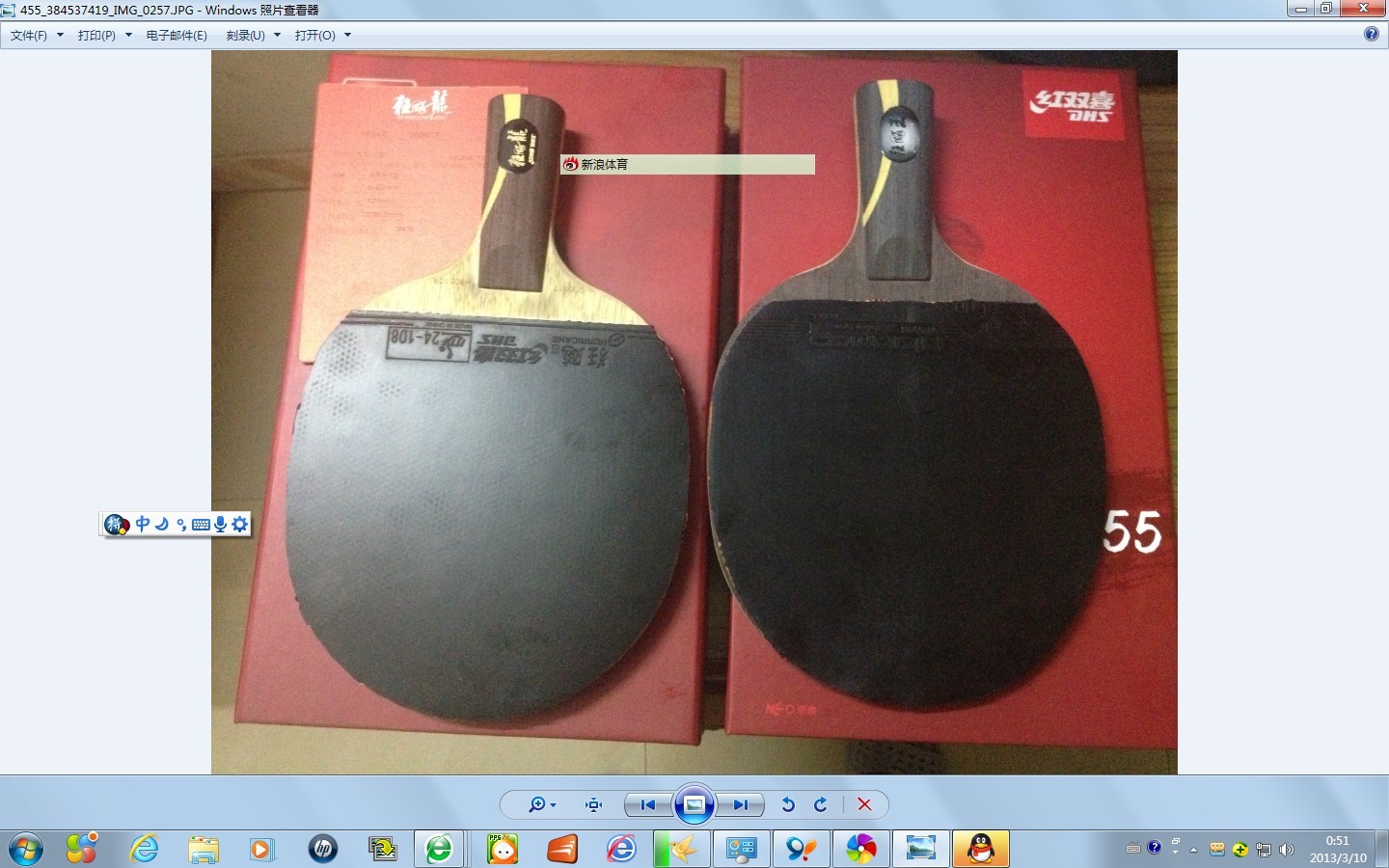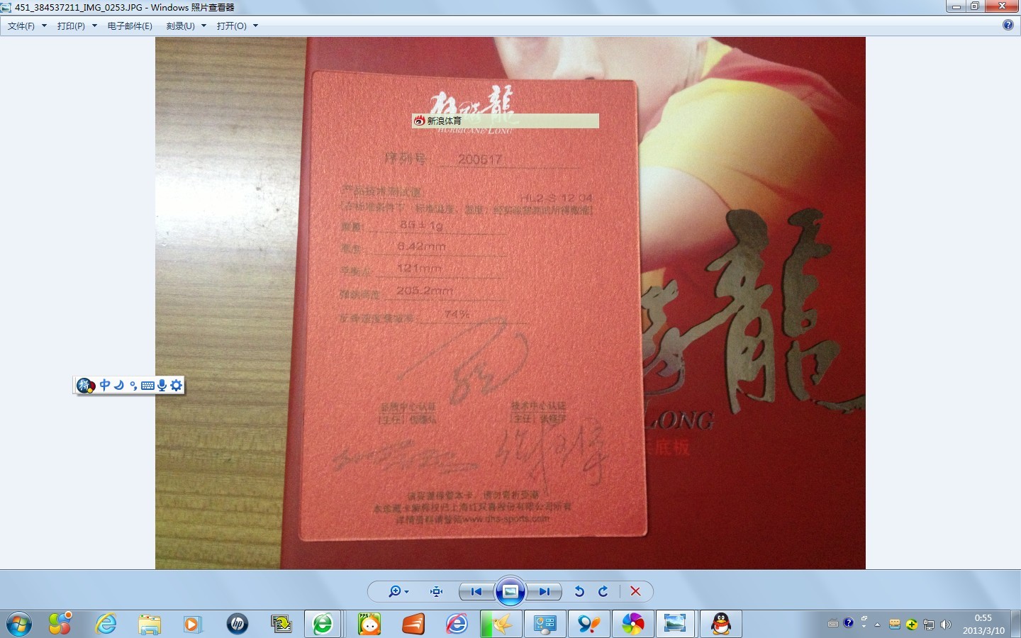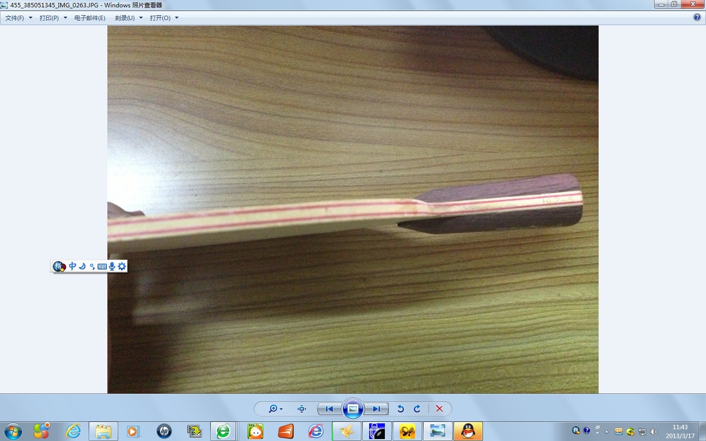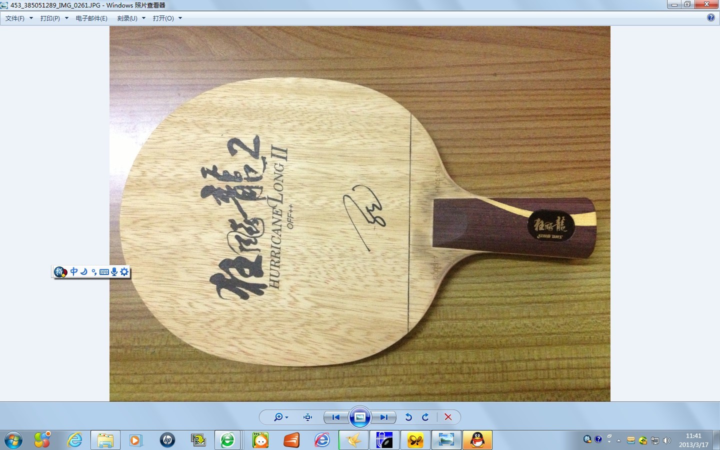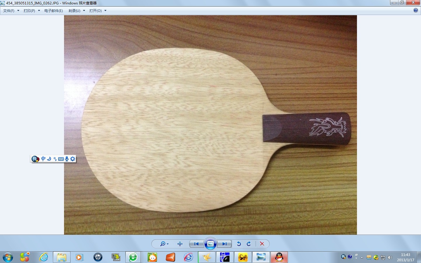 黑檀7,77克。板子基本全新,拍肩极轻微打磨;细砂轻微打磨板面,以方便粘胶。1300元购自深圳龙珠体育,又硬又弹,脱板速度快,一速惊人。