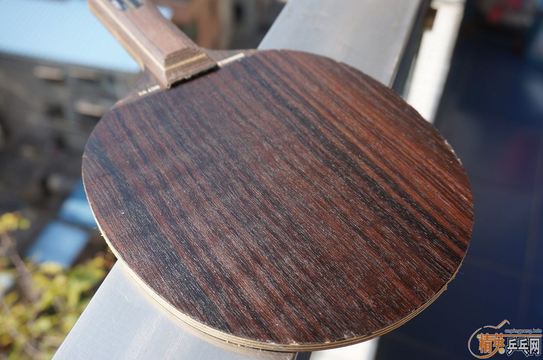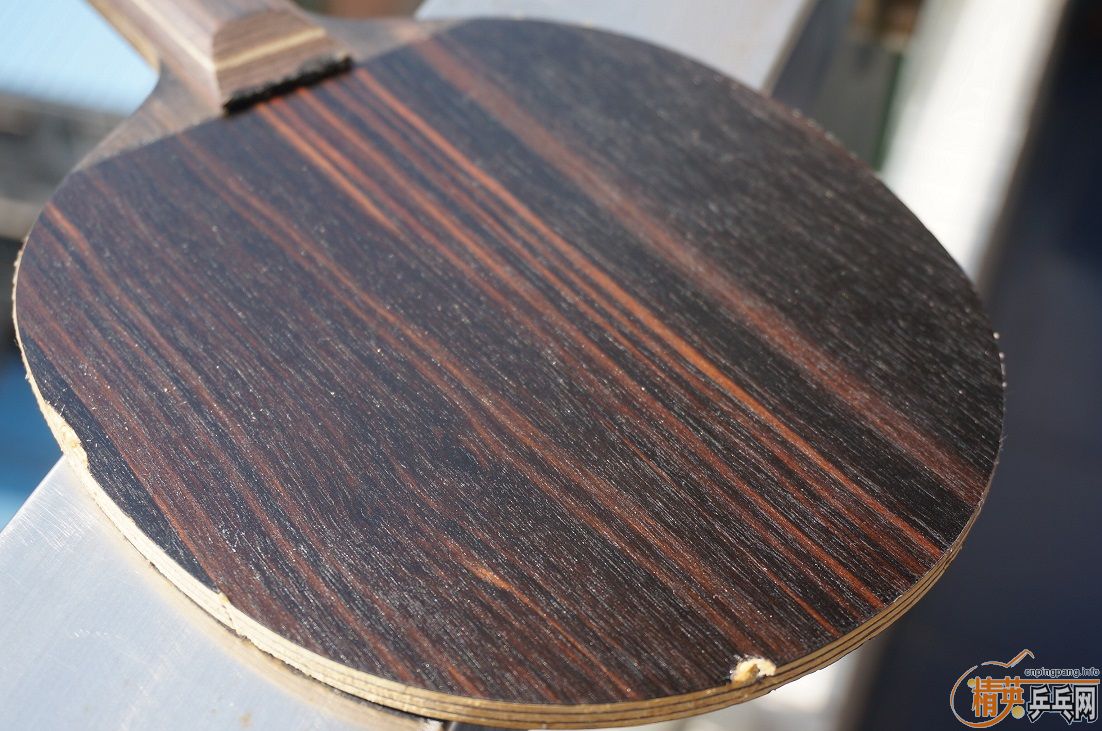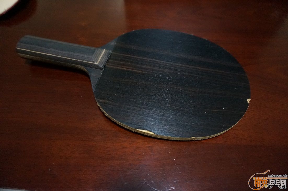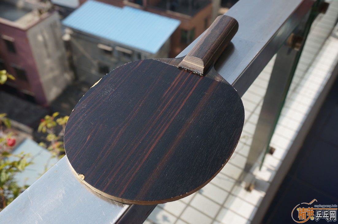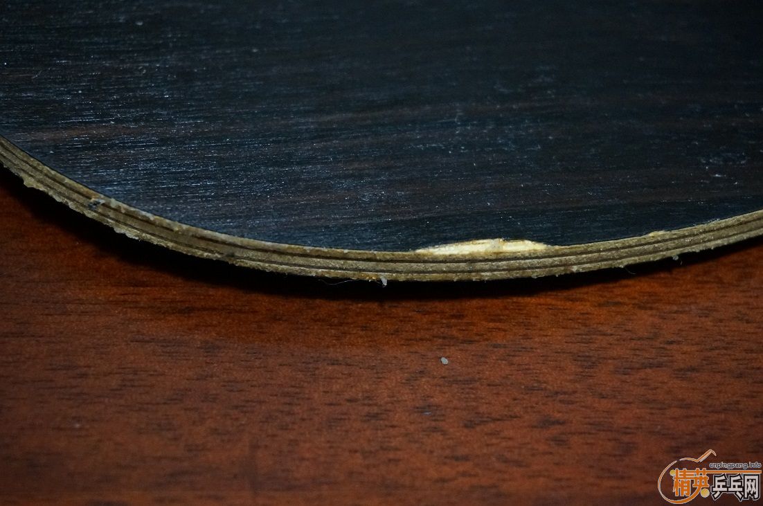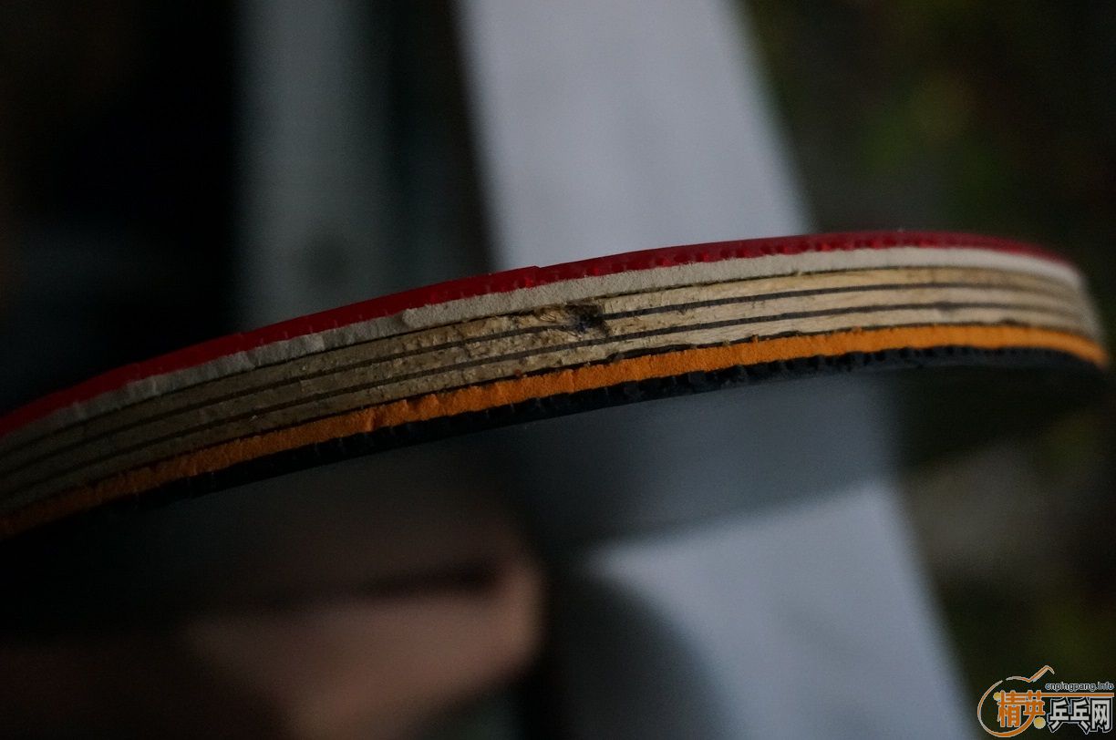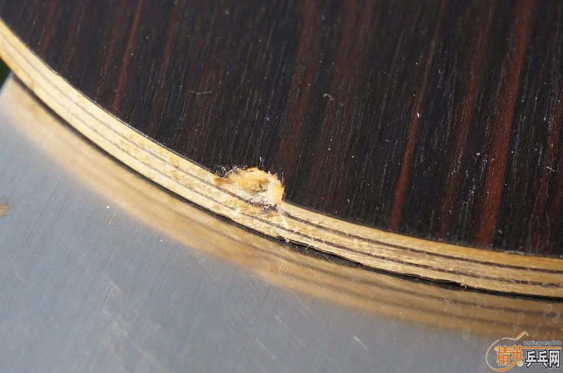 为了让大家看清黑檀七真面目,避免误会,现把胶皮脱下拍裸照,球拍的反面边缘有两处伤