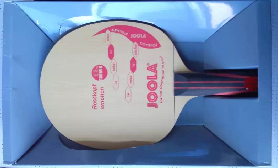 • 型号:JOOLA ROSSKOPF EMOTION 类型:进攻型 材质:5+2(桧木+寇头+碳素+阿尤斯)重量:82g/FL 厚度:6.3mm 控制:好 速度:快 特点:在原有的JOOLA ROSSI底板的基础上,更加成熟的打造,这款底板曾经是德国乒乓先生,现任德国男队主教练的罗斯科夫先生的专用底板。国际乒联2014最佳男运动员:尼日利亚黑人阿鲁纳的主板。