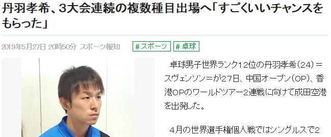 5月27日,世界排名12位的日本名将丹羽孝希(24岁)从成田机场出发,踏上了中国-香港-日本公开赛“三连战”的征途。