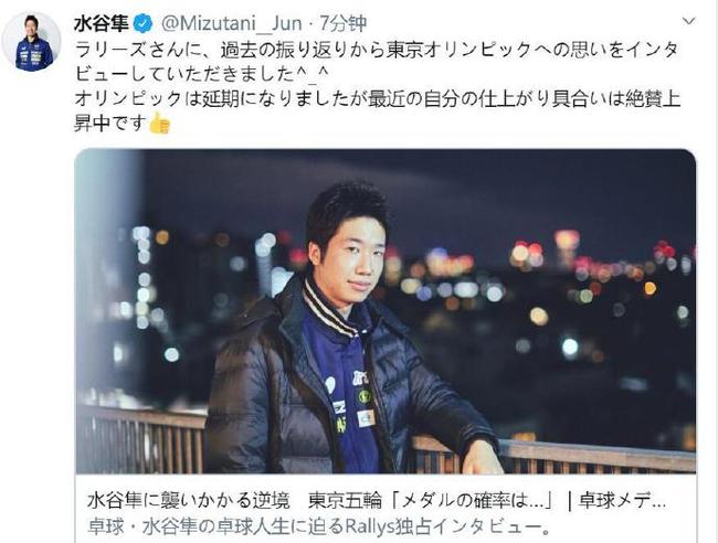 如今2020年东京奥运会已经延期,水谷隼表示:虽然奥运会延期了,但是最近自己在进步中。