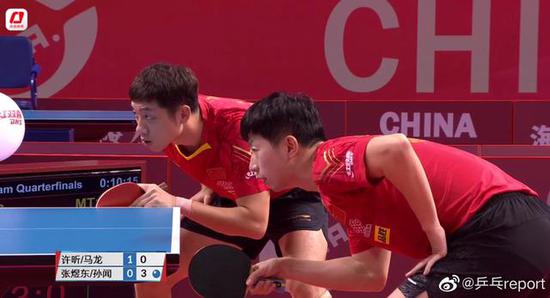 马龙/许昕3-0张煜东/孙闻(11:7、11:411:4)